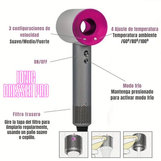 Secador Iónico- IONIC DRESSER PRO + 5 ACCESORIOS